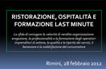 Seminario "Ristorazione, ospitalità e formazione last minute. La sfida di coniugare la velocità di vendita-organizzazione-erogazione, la professionalità e la formazione degli operatori-imprenditori di settore, la qualità e la tipicità dei servizi, il benessere e la soddisfazione del consumatore, Rimini 28 febbraio 2012