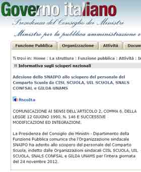 - l’adesione allo Sciopero Nazionale di tutto il Personale del Comparto Scuola per l’intera giornata del 24 novembre 2012;